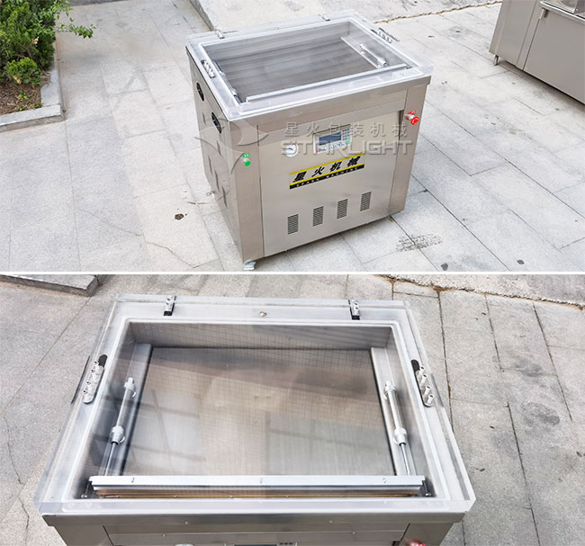 1、農產品真空包裝機真空蓋采用透明有機玻璃真空蓋,工作情況一目了然。